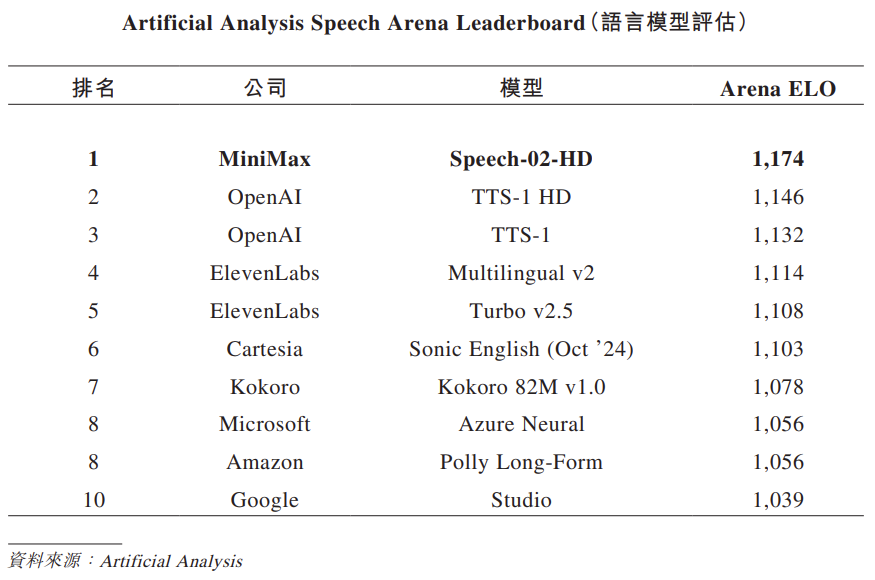 MiniMax的模型一經發布,即在文本、視頻、音頻模態上取得了領先表現,在Artificial Analysis的測評榜單中排名前列,並在所有開源模型中排名第一。根據灼識諮詢,按2024年全球基於模型的收入計,MiniMax是全球第十大的大模型技術公司、全球第四大pureplay大模型技術公司。