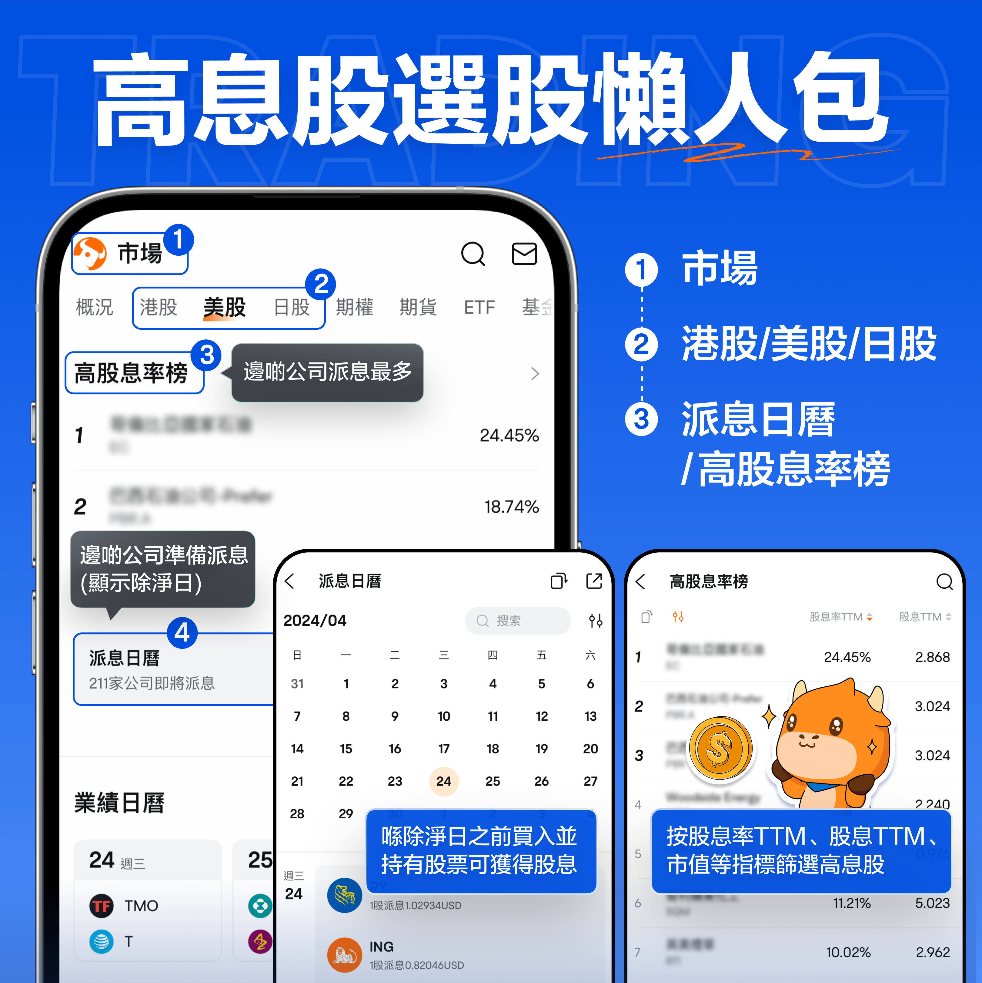 以上判断是由行业与宏观经济的敏感度作为基准而定下来,投资者要了解个人风险承受能力而作出判断。如果想寻找更多关于高股息的股份,可以用以下功能在牛牛上寻找股份。