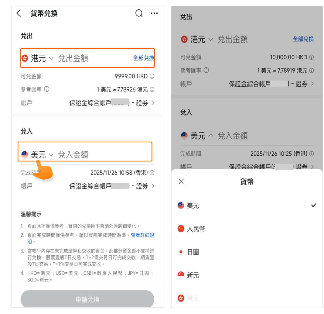 富途牛牛支持港币、美元、离岸人民币、日元之间的货币兑换。只需一个账户即可进行多市场交易,把握全球投资机会。