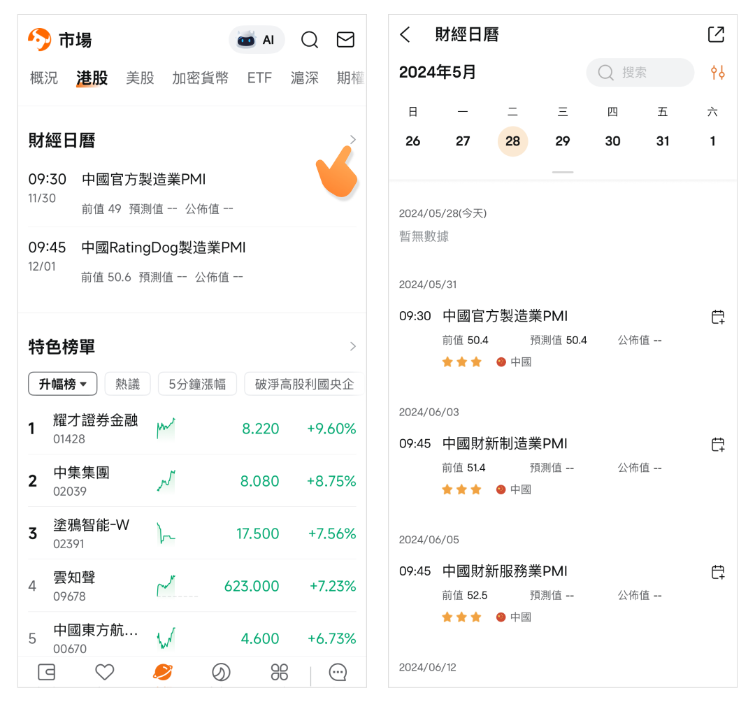 财经日历服务,您可在此了解过往或未来宏观经济指标的详细信息,以便您更好地了解市场宏观走向。下面将以香港股票市场为例向您介绍。