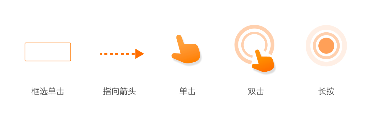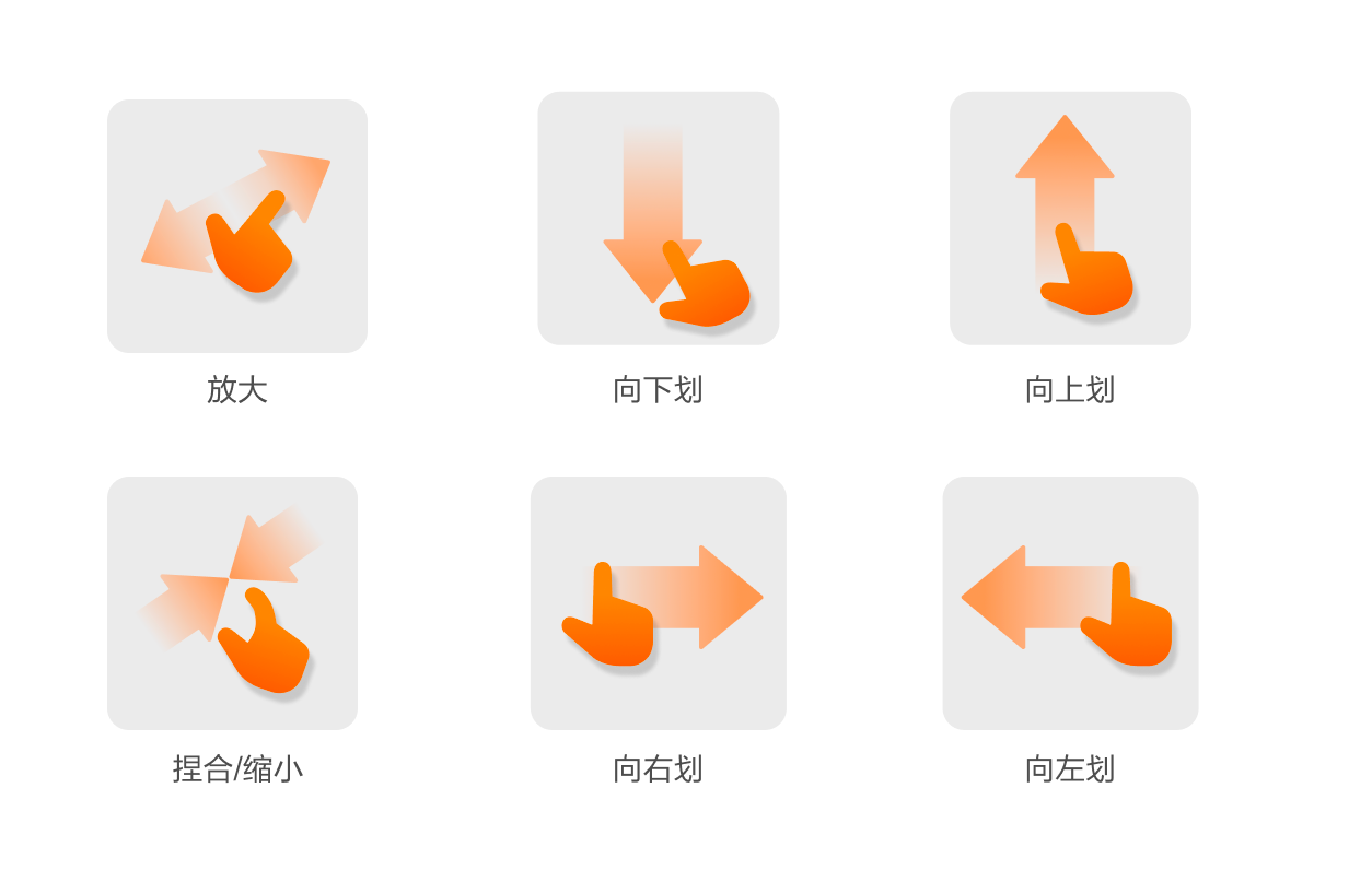 b. 手势序号,包括框选、点击/双击、放大/缩小、上下左右划动等操作。