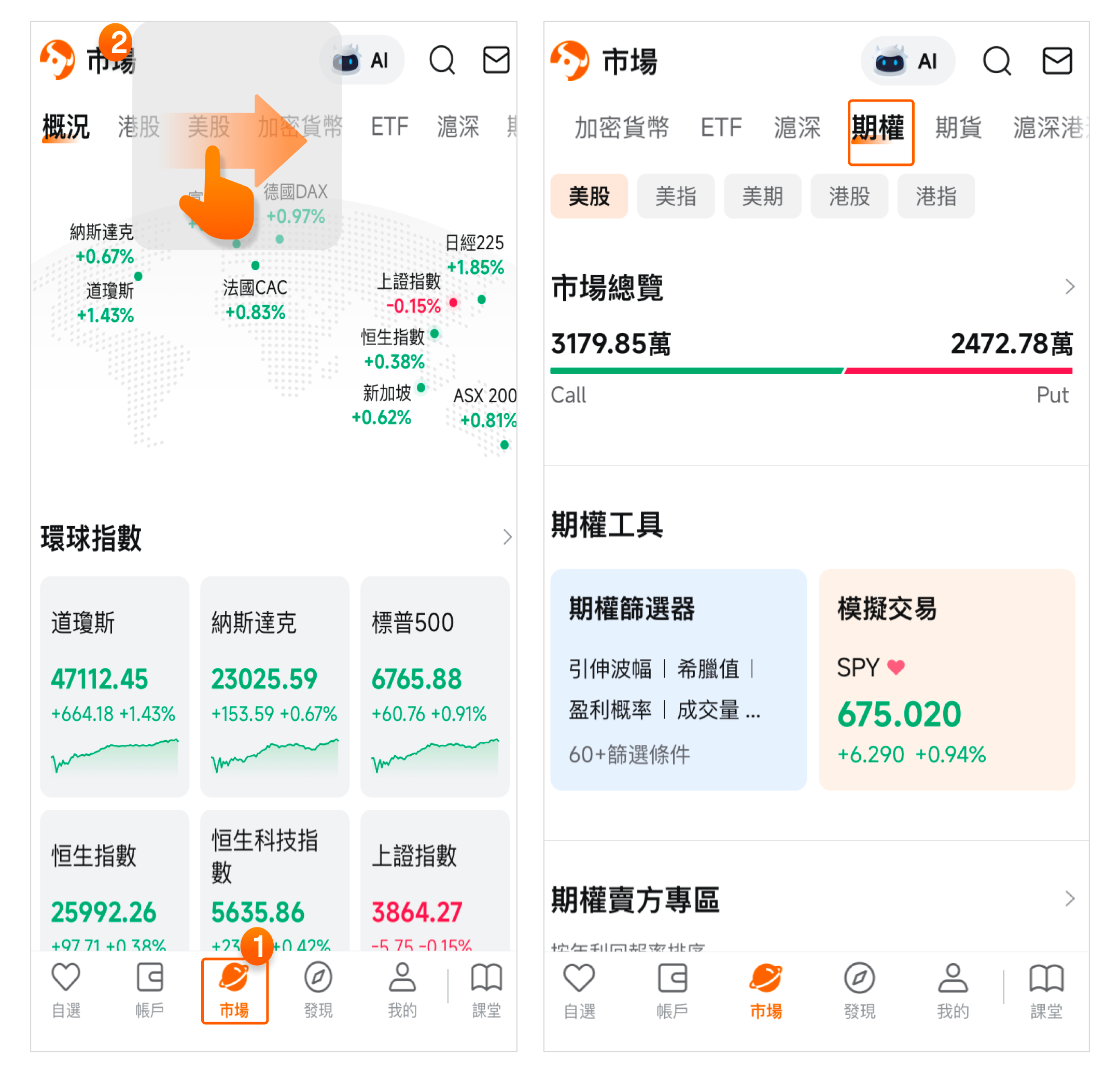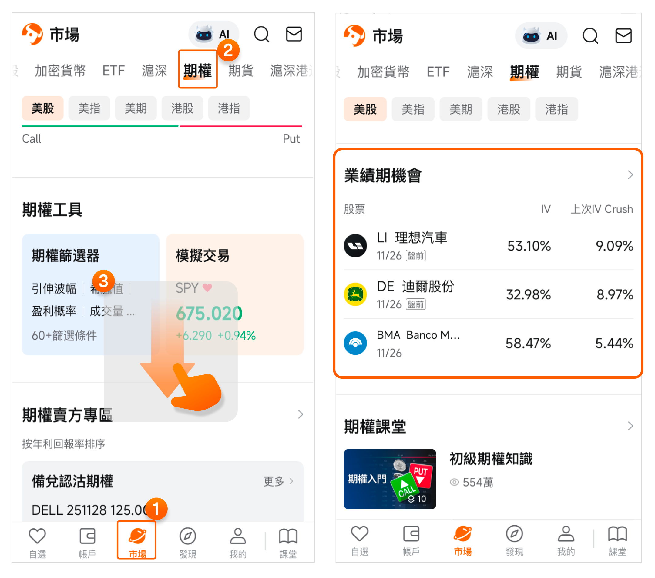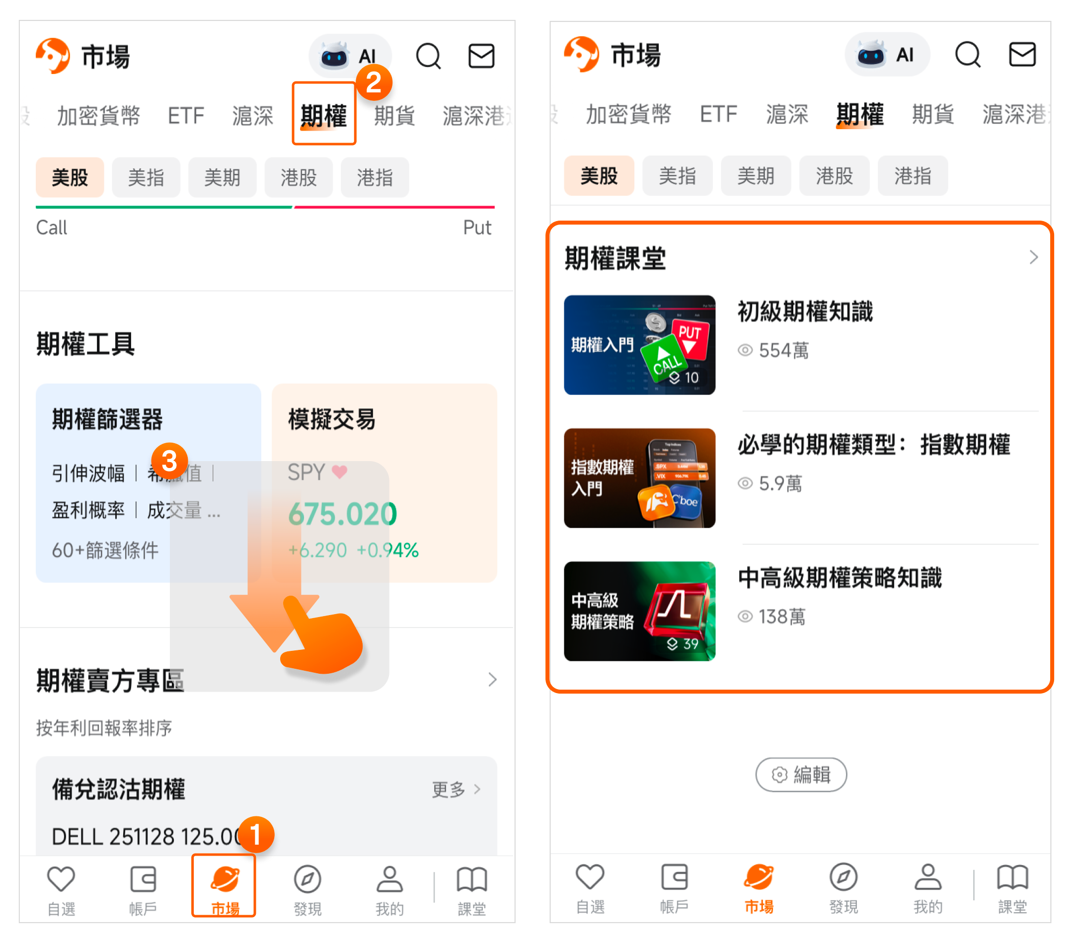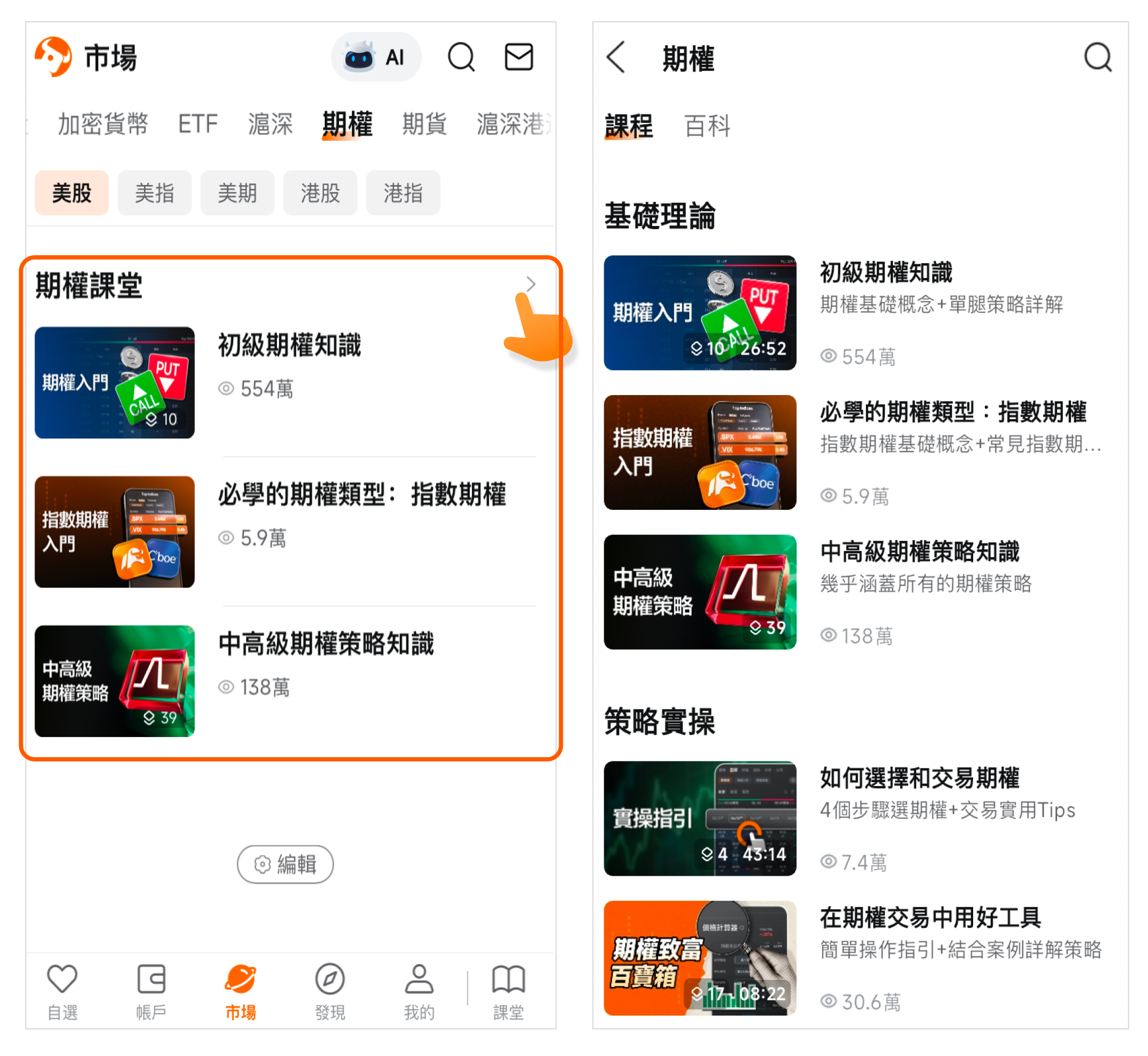 路径:市场页>顶部菜单栏>期权>期权课堂。