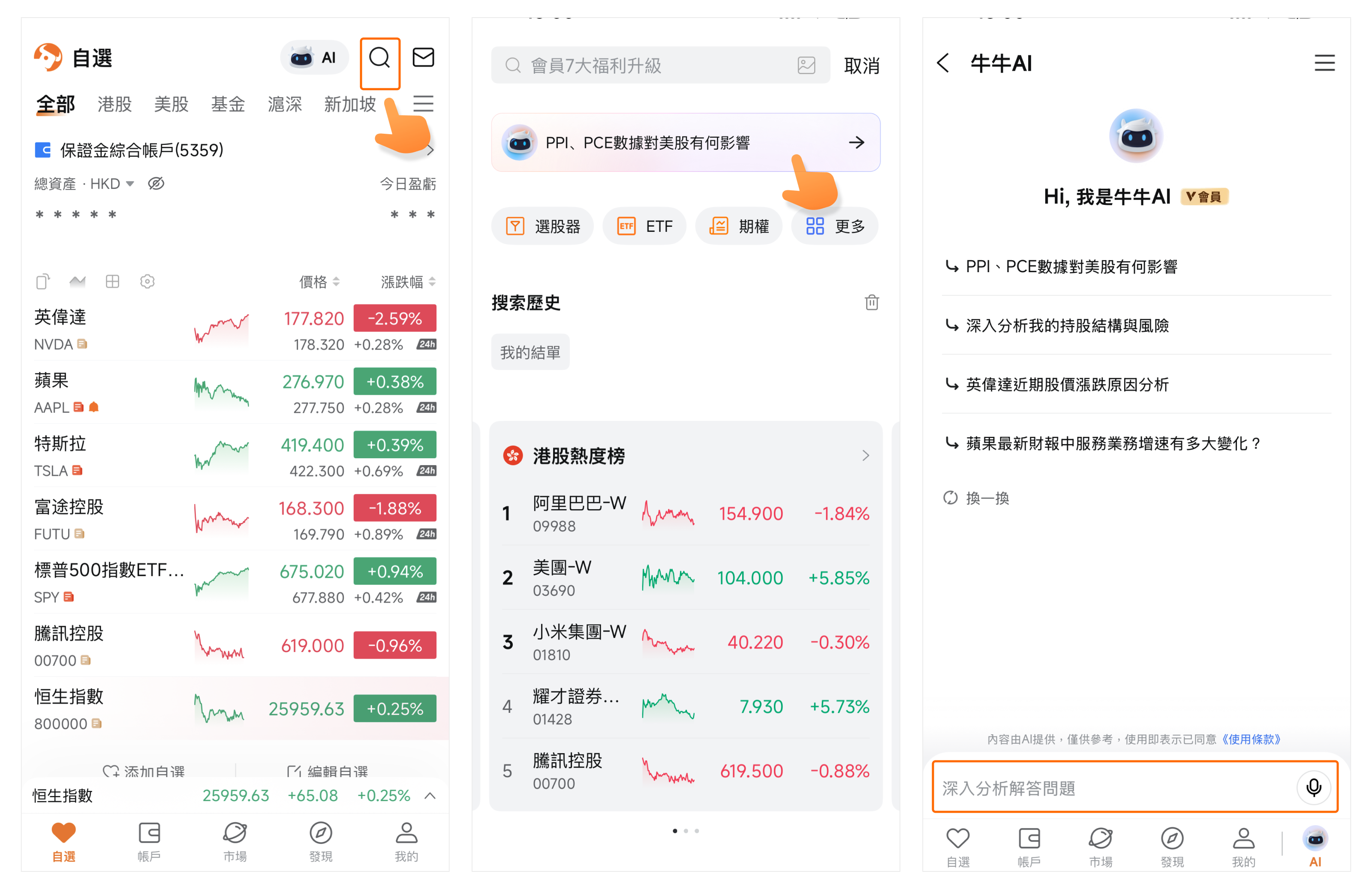 您可以在APP和新版桌面应用中使用AI问答功能,询问关于热点、大市、个股等方面的各类投资问题,通过AI技术提升您的投资效率,改善您的投资策略,助您做出更好的投资决策!会员可无限次使用牛牛AI问答,非会员也可享受30次试用机会。