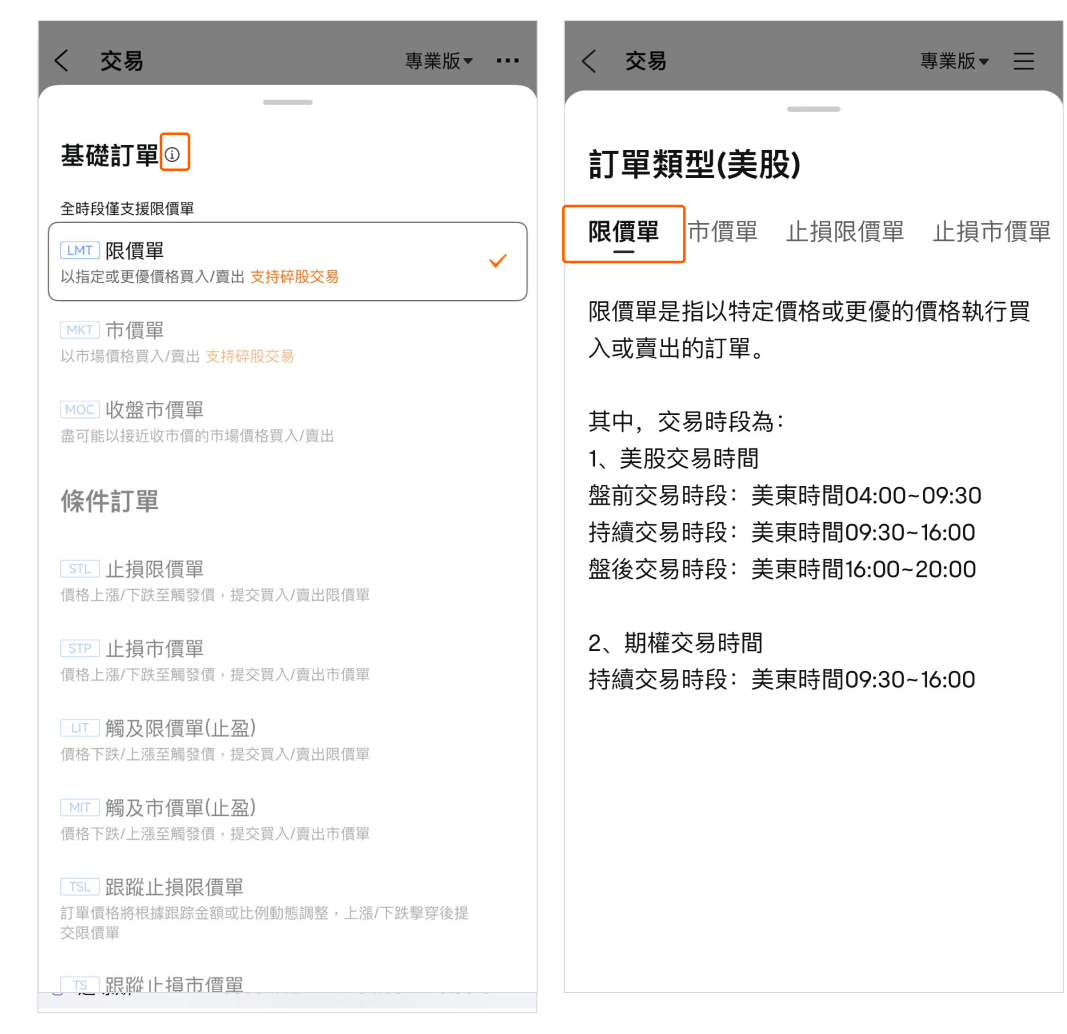 竞价限价单:港股市场专有订单,早市(T日16:10-T+1日09:22)/收市(09:30-16:10)竞价时段,以你指定或更优价格交易。