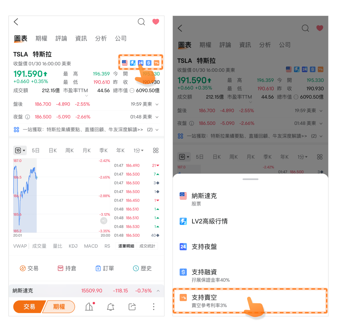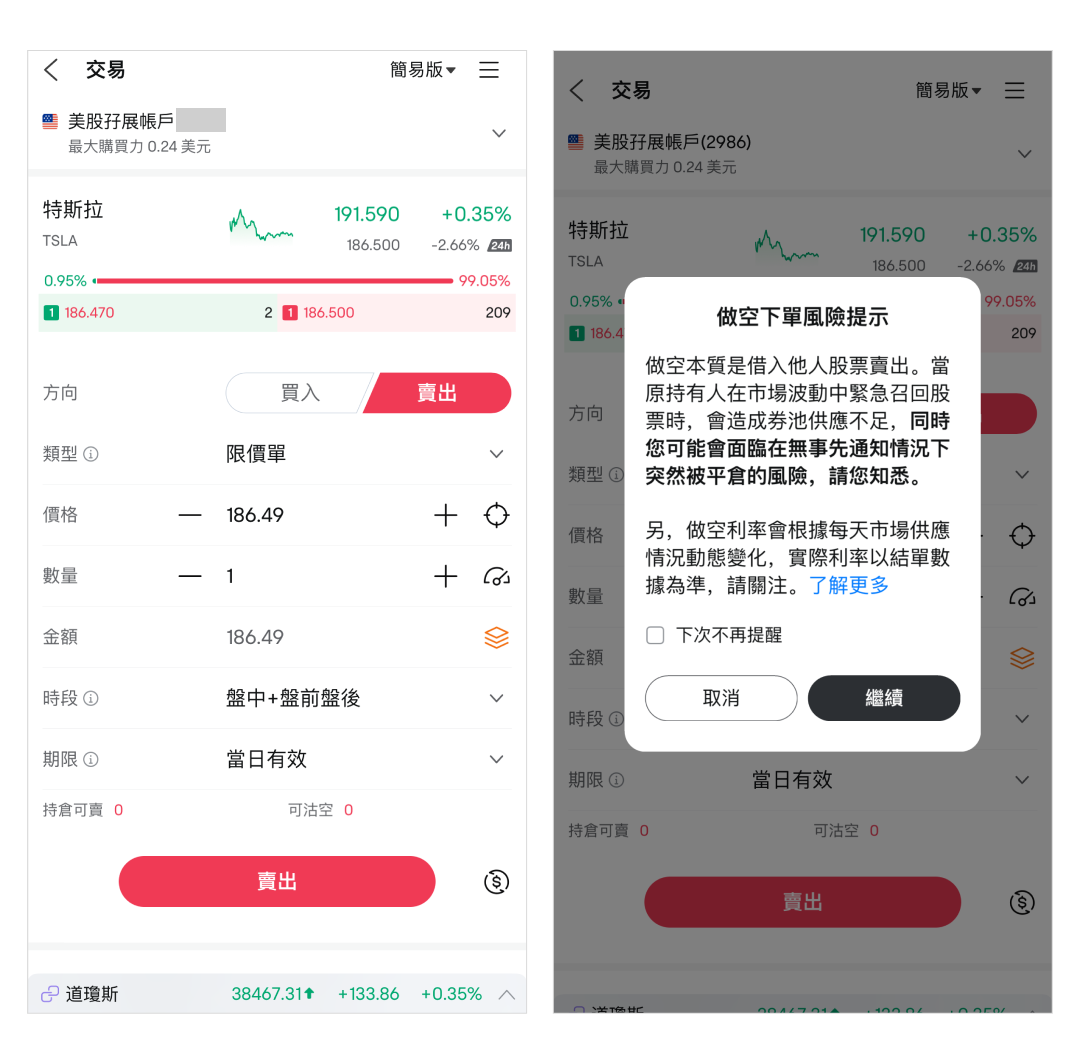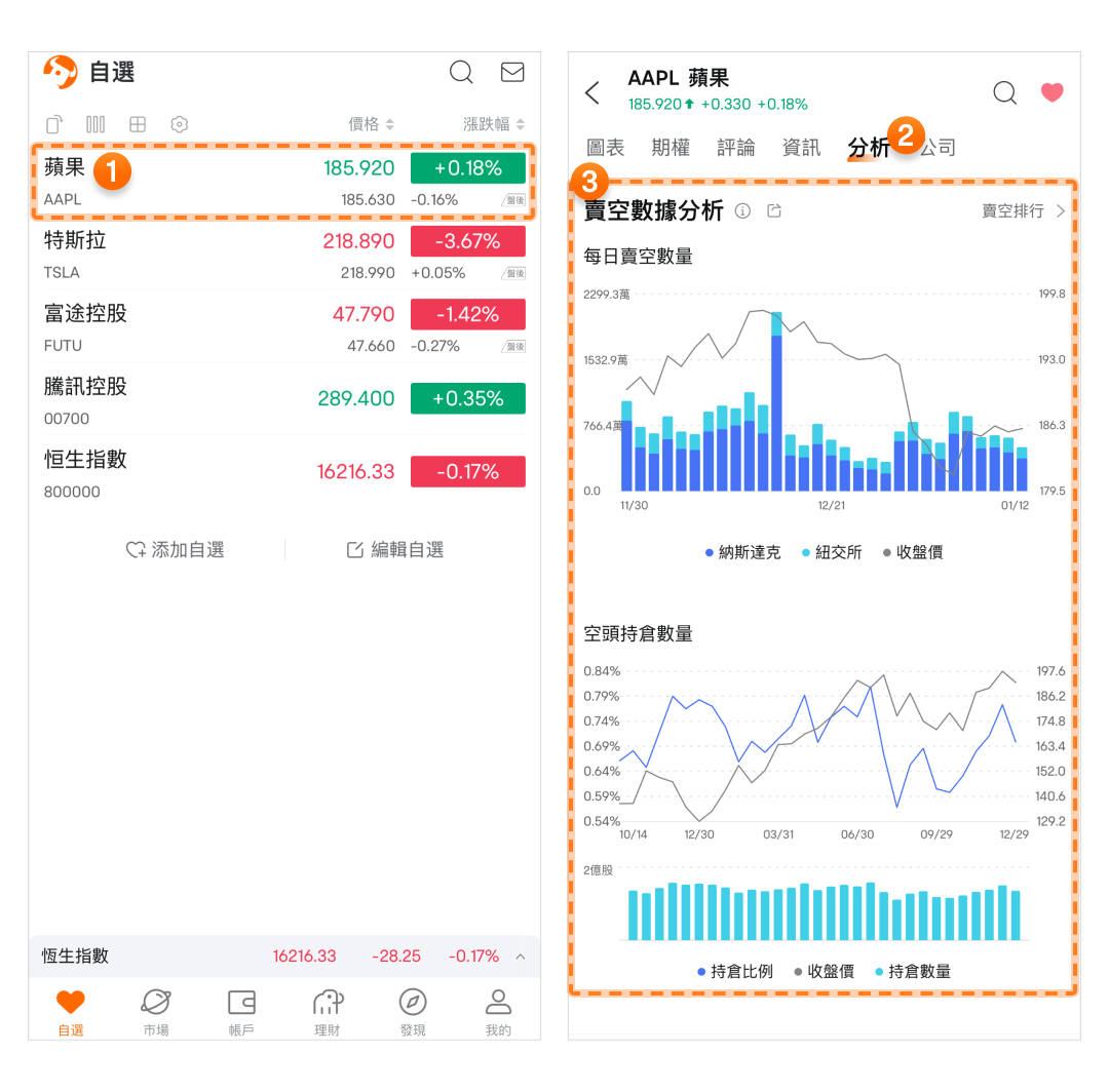注:港股卖空需要特殊申请,美股卖空不需要额外申请。