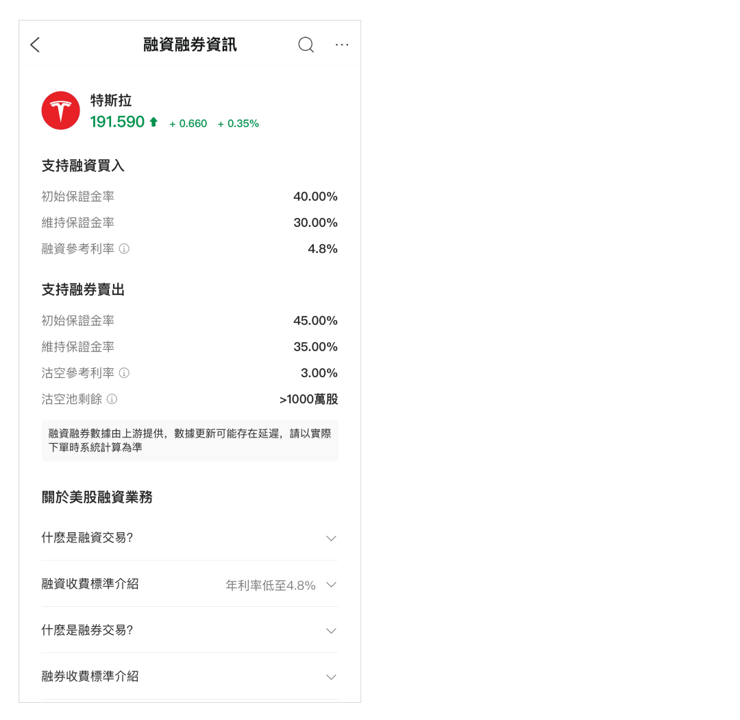 卖空需要支付一定利息,卖空利率会根据市场供应情况有所变化。在股票详细报价页面,点击图示区域,可以查看卖空参考利率。
