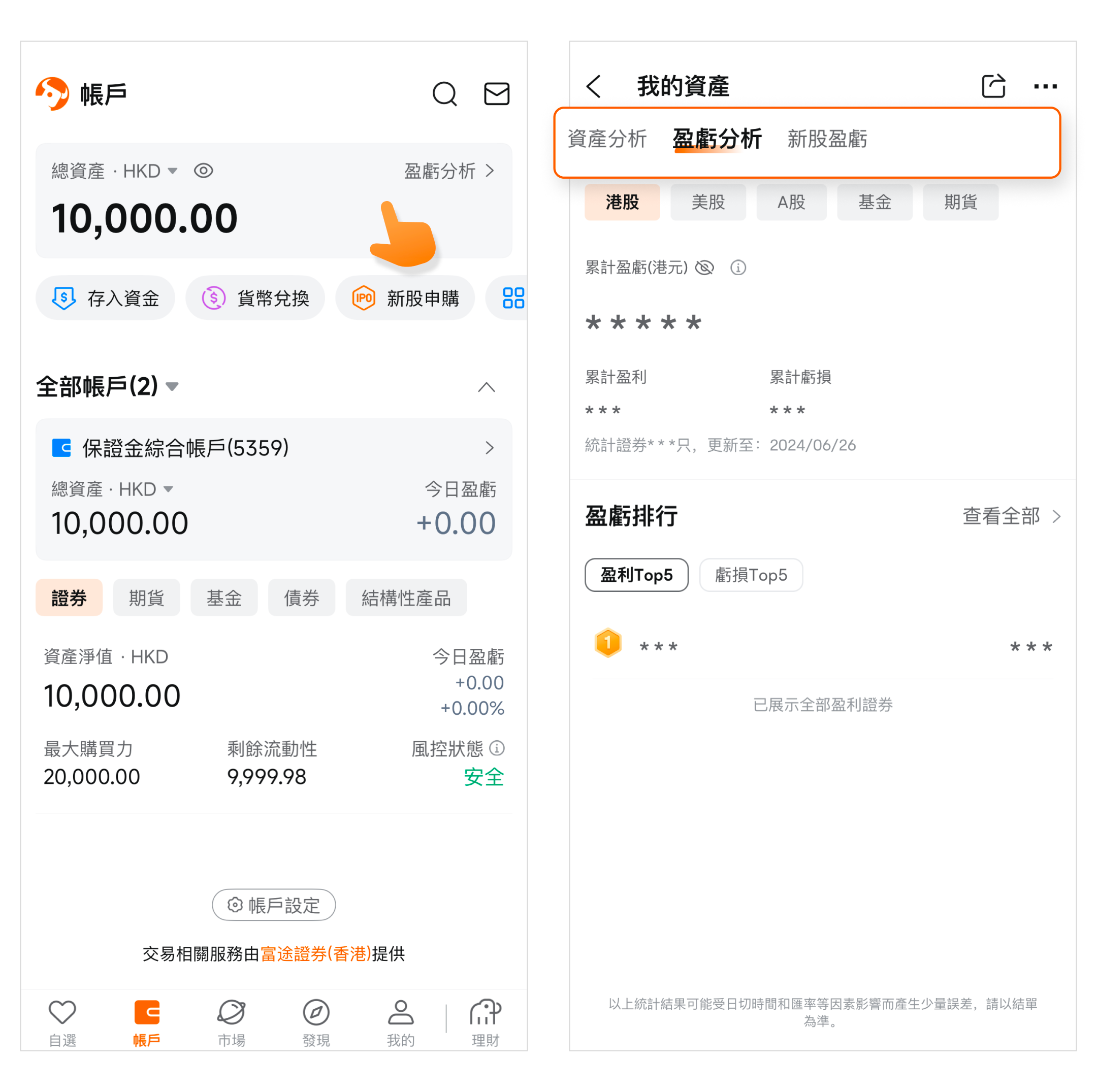 路径:账户页>总资产>我的资产>盈亏分析