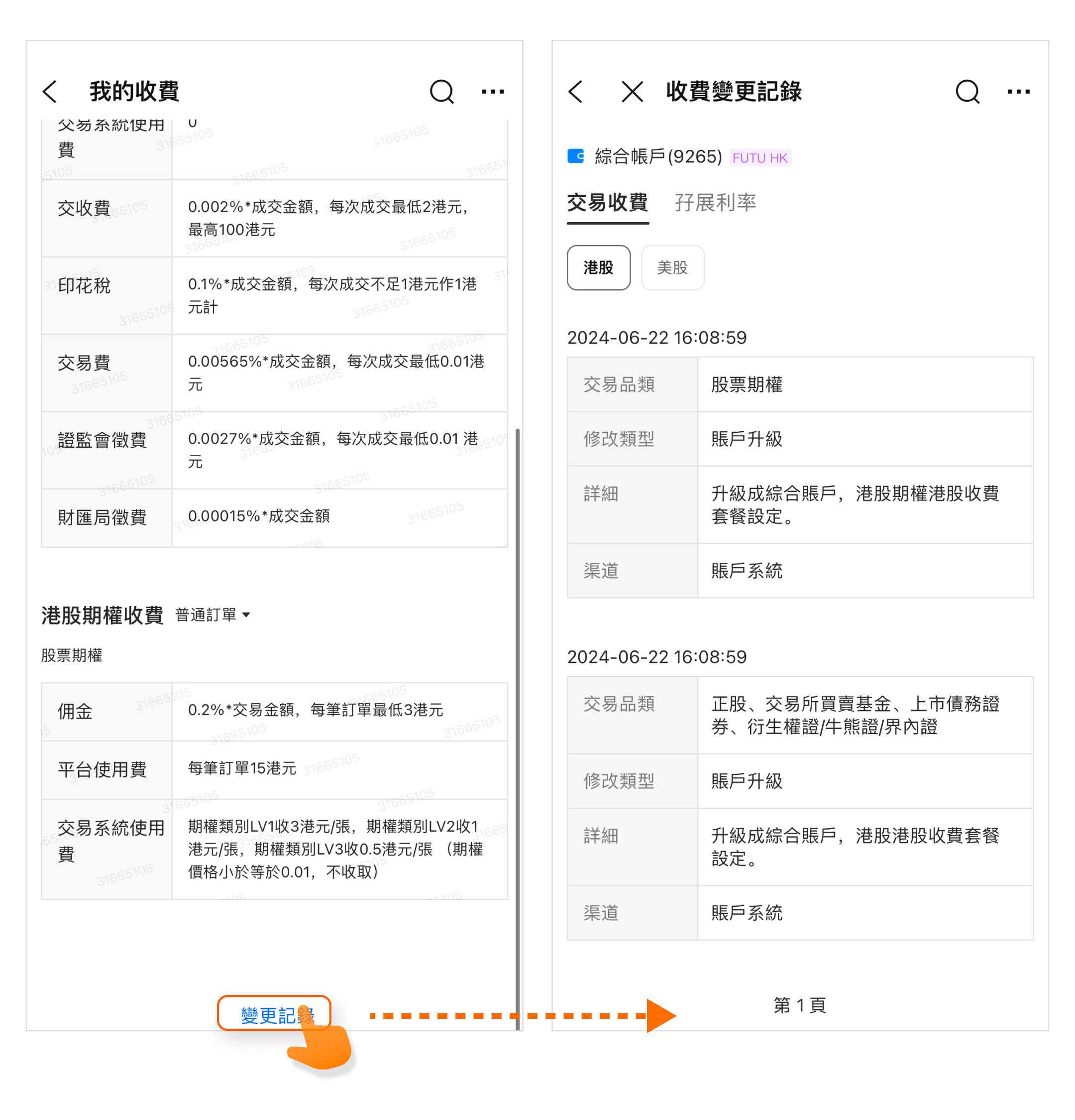 滑动到页面最下方「变更记录」,点击进入可查看收费变更时间点及变更前的记录。