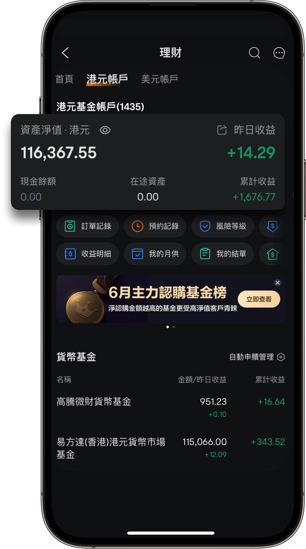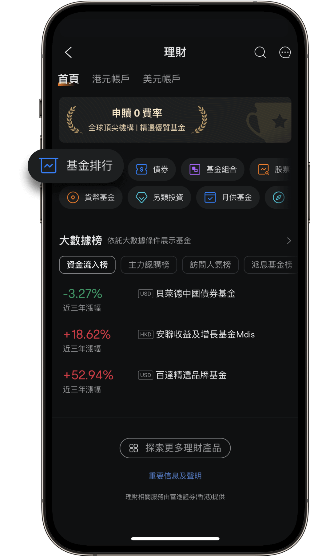在富途每申购1笔$10,000的基金