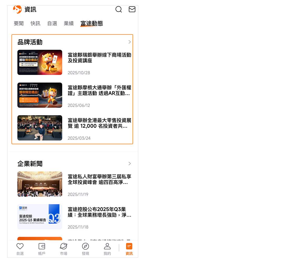 「富途動態」頁您可在此處查看富途的品牌活動、企業新聞、行業洞察以及訊息。