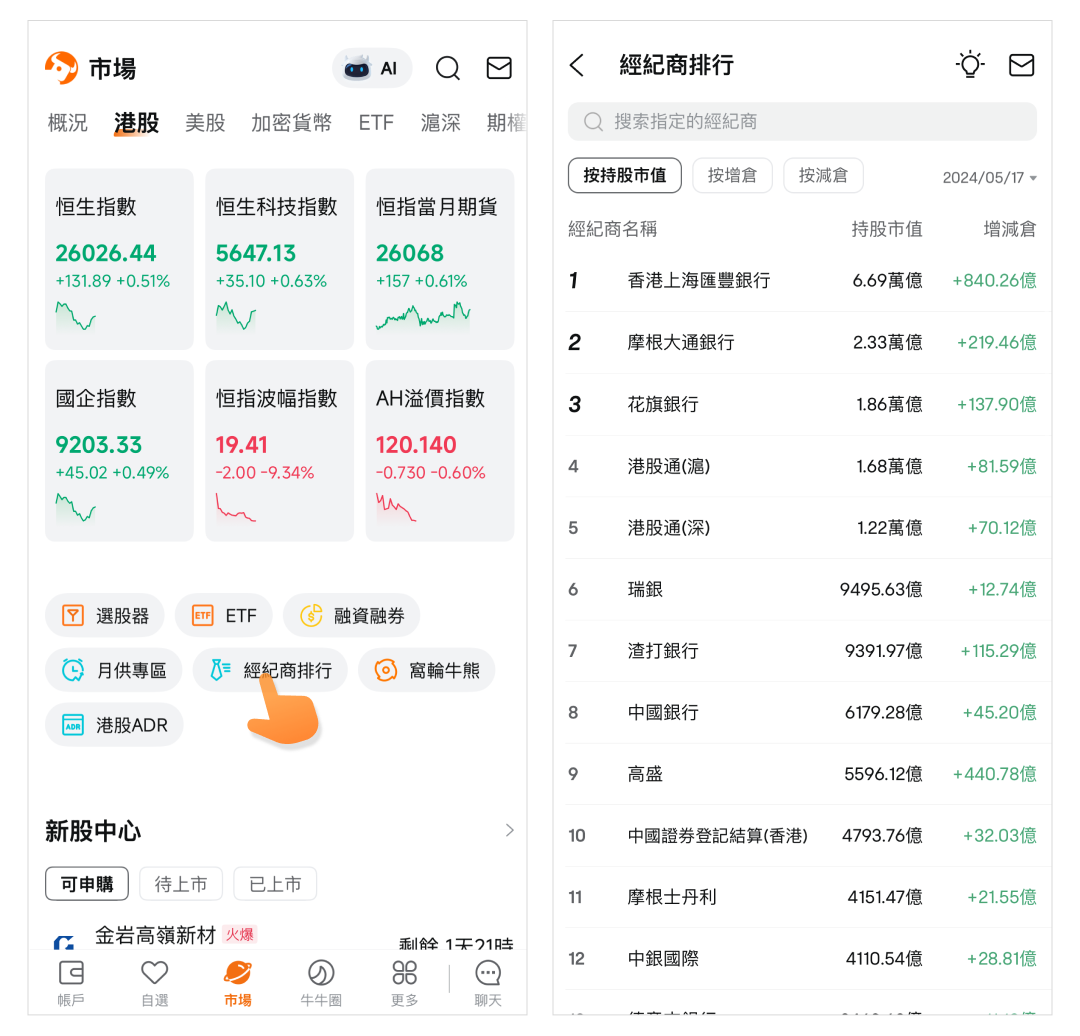 路徑:市場頁>港股>亮點工具>經紀商排行