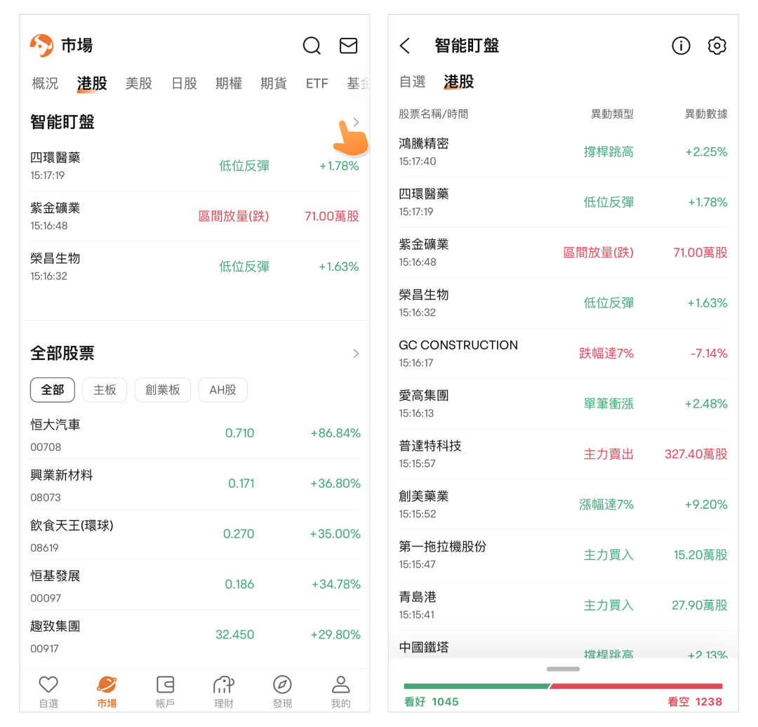 路徑:市場頁>任意市場>智能盯盤。