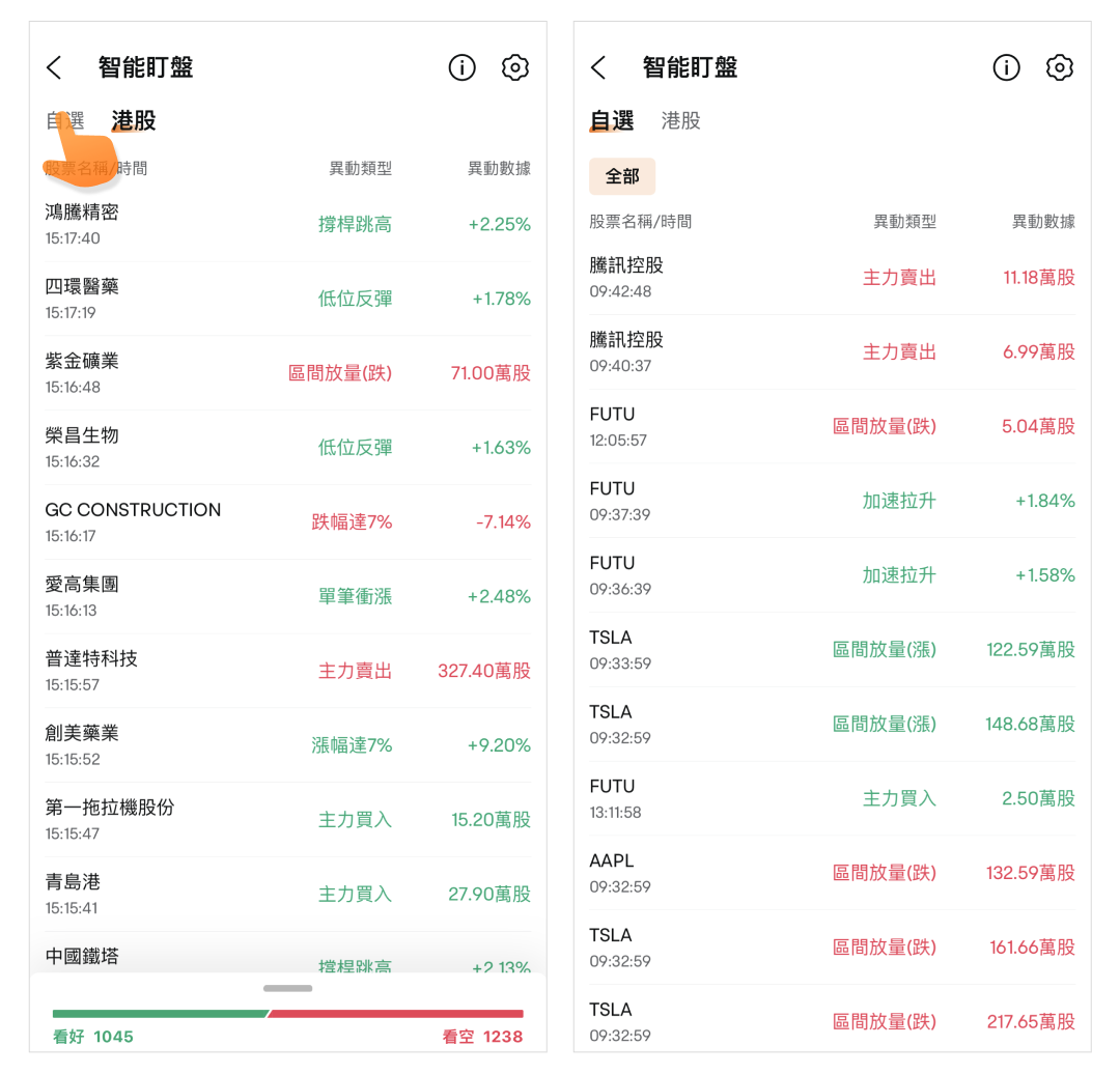 路徑:市場頁>任意市場>智能盯盤>盯盤設定>異動類型