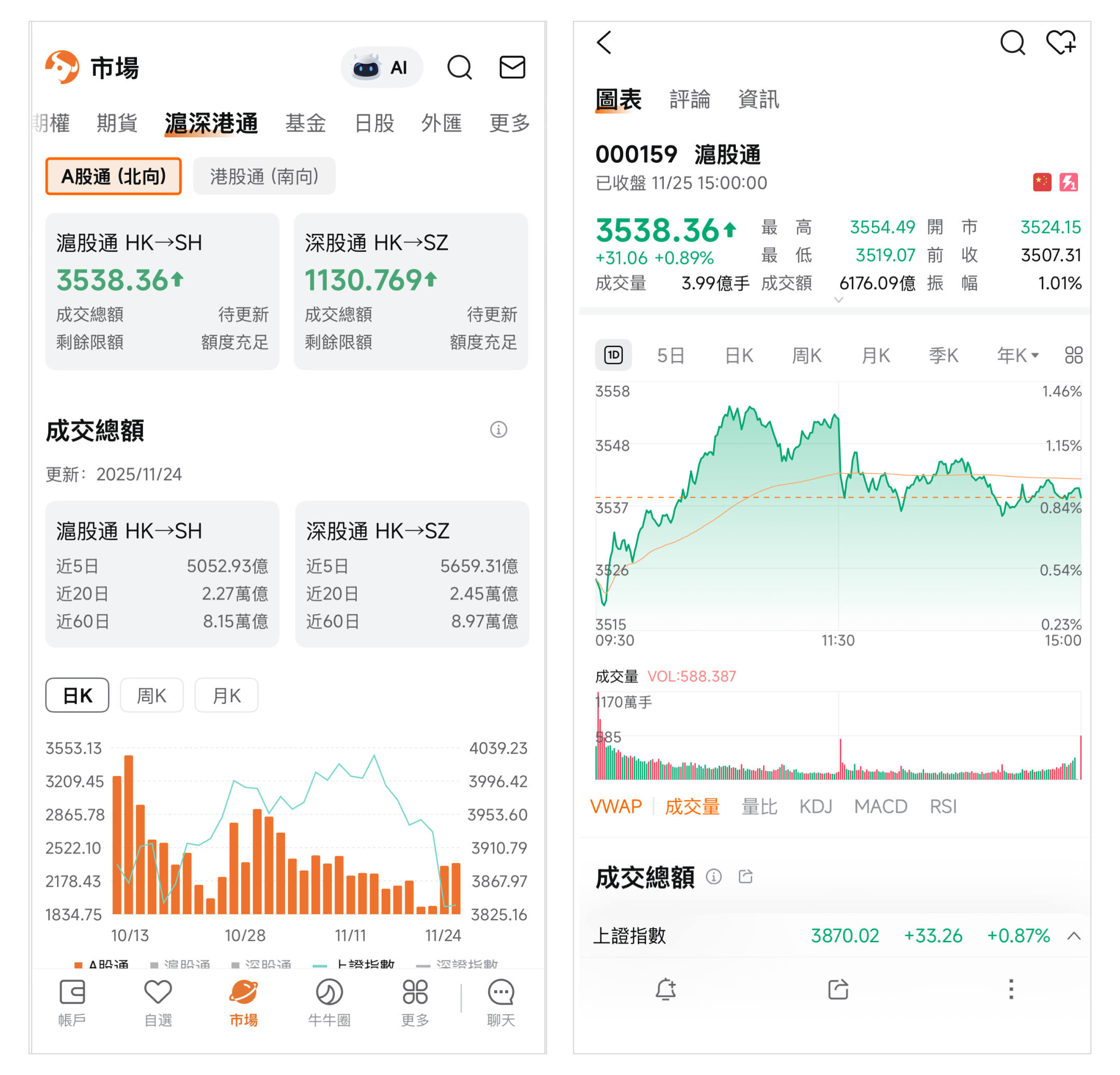 路徑:市場頁>頂部菜單欄>滬深港通>成交總額