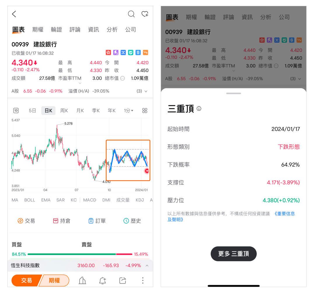 需要注意的是,本功能僅作資訊提供之目的。相關財務解讀、形態分析或演算結果並非針對您的背景和風險情况而作出的,不是也不應被視為任何證券或投資的出售要約或購買要約邀請,亦不應被視為研究或投資建議。