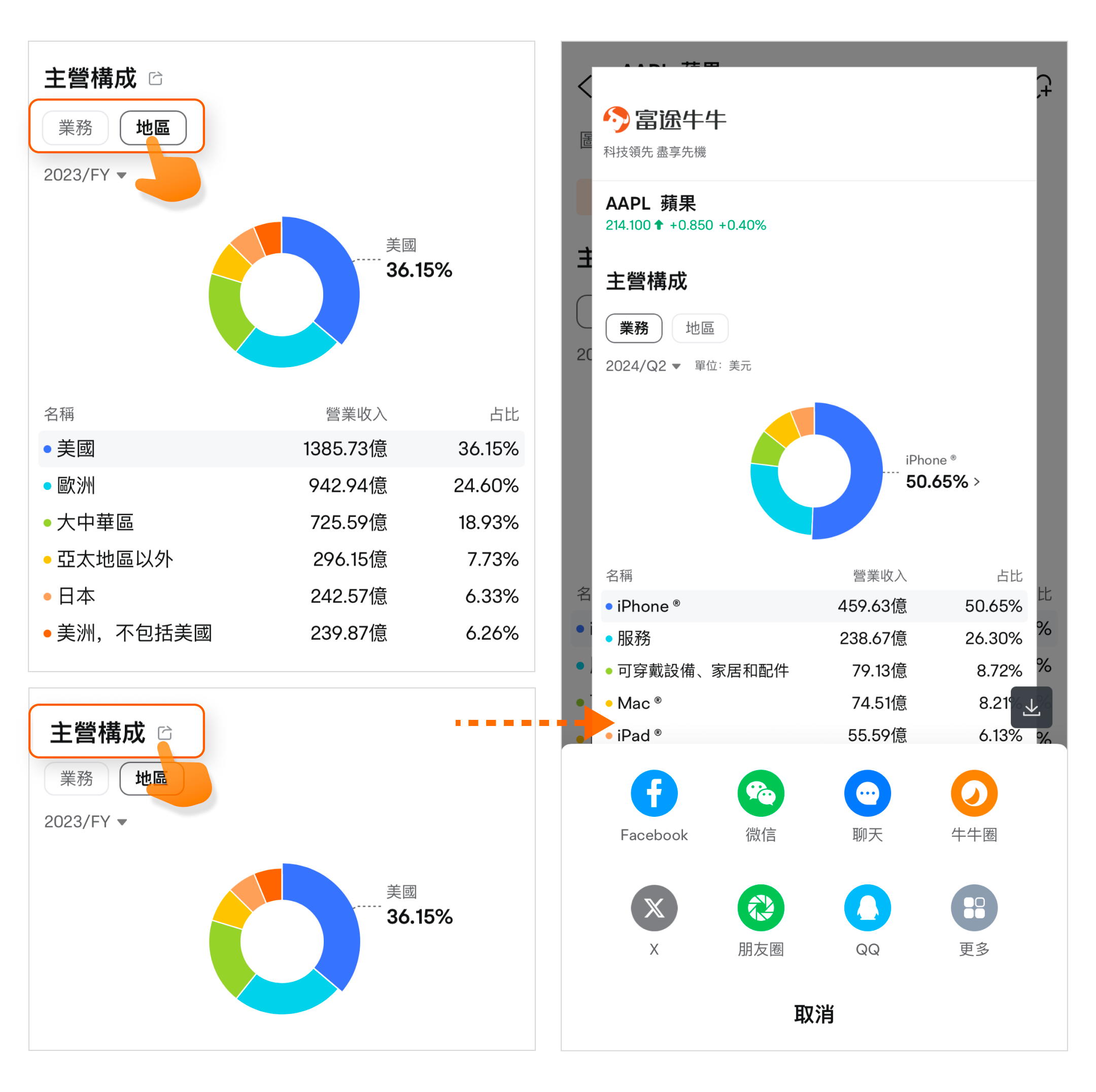 點擊「地區」,您將詳細瞭解該公司在不同地區的營收分佈及佔比情況。