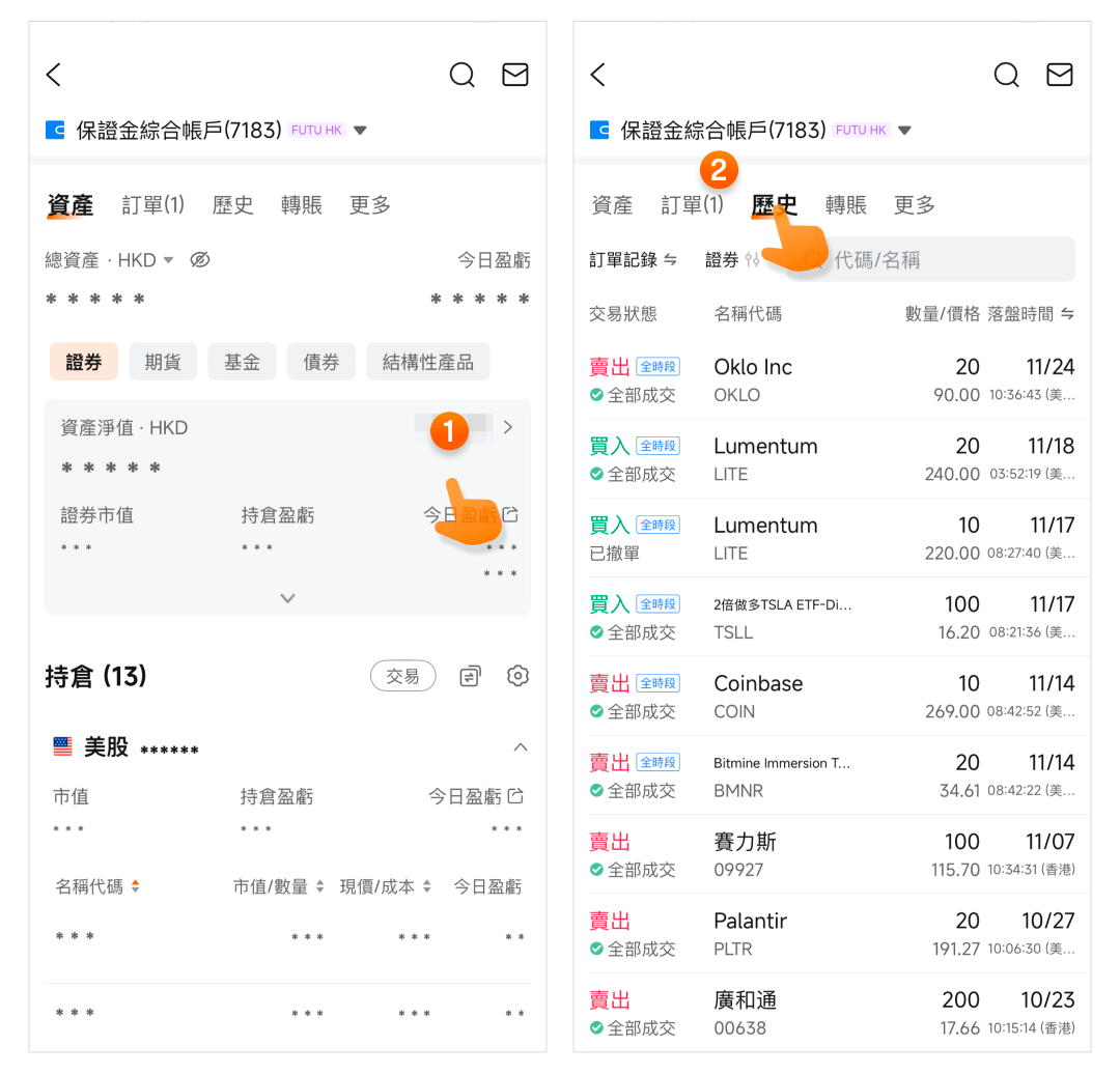 路徑:帳戶頁>具體帳戶>歷史