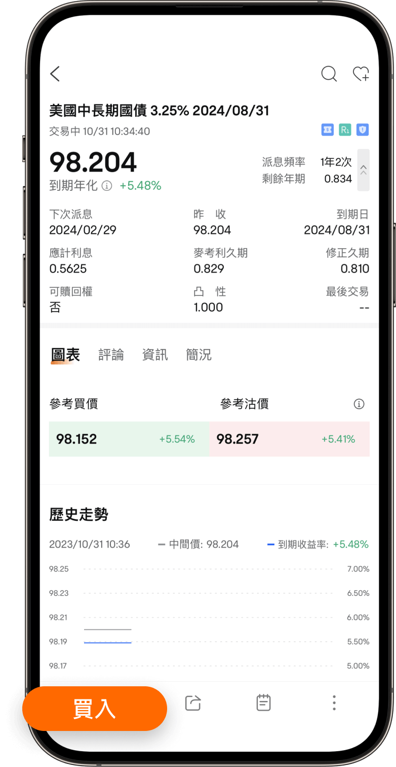 您可以輸入想要購買的面值和期望的買入價格,可根據“參考賣盤價”下單。 (此價格僅為“參考價”,實際可執行的成交價格可能與其有出入。)