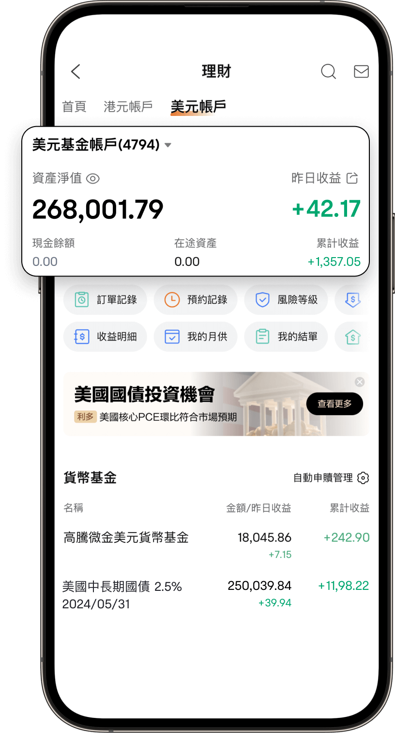 交易成功後再對應賬戶頁,可以查看持有美債的收益情況